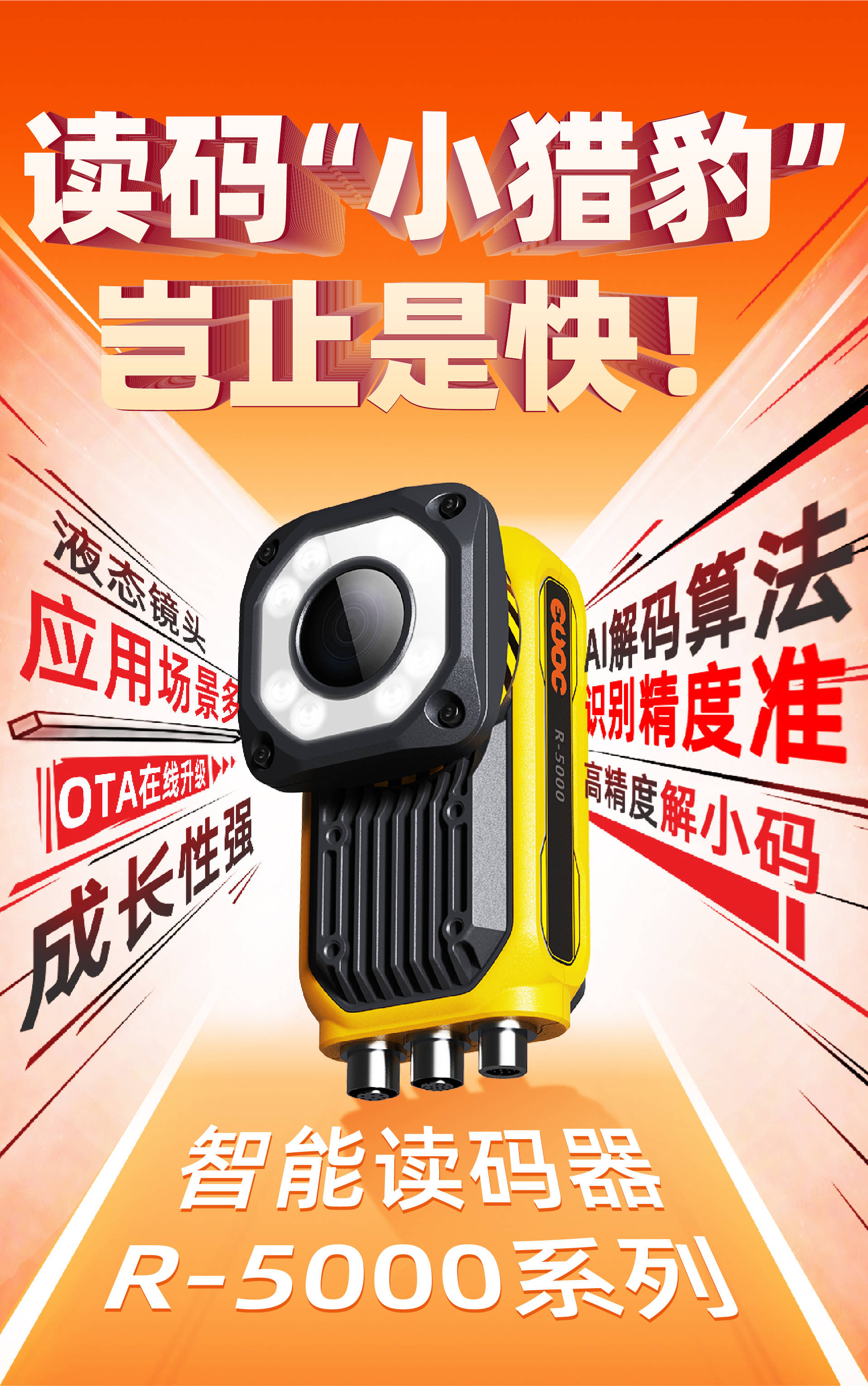 近日,kaiyun开云电竞全新推出智能读码器R-5000系列,搭载液态镜头、深度学习算法,自动变焦速度与解码速度均有显著提高。R-5000具有应用场景多、识别精度准、成长性强等特性,能够快速精准读码,可为用户提供超强性能的读码解决方案。